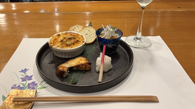 「KEG生樽サーバー」からシャンパーニュグラスに注がれる鮮度抜群の「prototype1(プロトタイプ)No.17 」と、牡蠣のグラタンや、酒粕チーズ豆腐などなどをいただきました。クリーミーな料理との相性が抜群で、ライトでジューシーながらもしっかりと芯のある味わい。まるで白ワインをいただいているような感覚になりました。