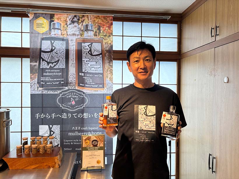 島村 悟さん。奥には「THE ASIAN SPIRITS MASTERS 2025」で金賞を獲得した賞状も