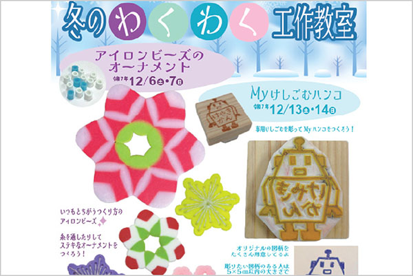 瑞穂町郷土資料館 けやき館 冬のわくわく工作教室 「アイロンビーズのオーナメント」と「Myけしごむハンコ」 体験プログラム 予約受付中 1. アイロンビーズのオー…