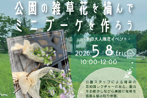 ・゜・。公園スタッフによる雑草の豆知識レクチャー・観察・摘み取り・ミニブーケ作り・゜・。芝生広場の雑草花を摘んで、かわいくラッピングしてミニブーケを…