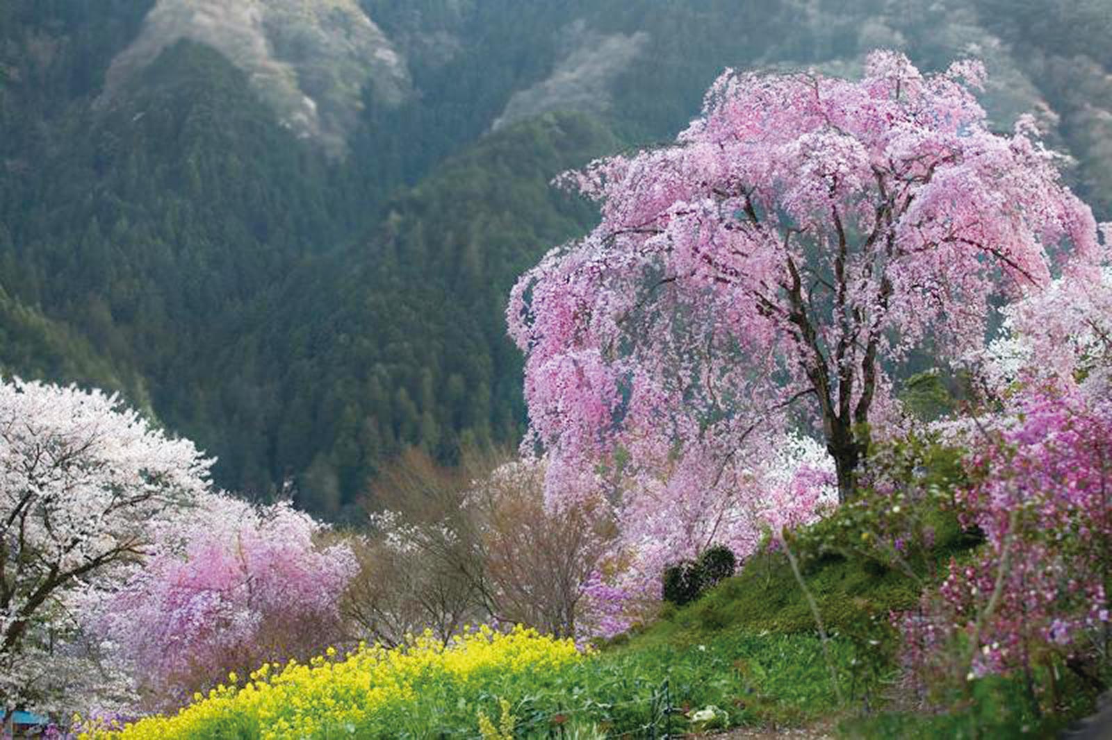 里山の雰囲気が色濃く残る乙津花の里は、4月上旬ごろからミツバツツジやソメイヨシノ、シダレザクラが花を咲かせ、一帯が桃色に彩られます。周辺には静かなお寺や、古民家カフェなどもあり、行楽にぴったりのスポットです。近くの温泉施設「秋川渓谷 瀬音の湯」で散策後に汗を流すのもいいですね。